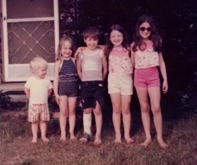 Here's me and my sibs: (from L to R) little brother, Steve, aka. Steve-a-rino, as a child, my "sparing partner", as adults, my NEVER see enough of precious brother; ME, aka. Suzie Q (my first name is Susan....). My sweet cousin Alan that has gone on to be with the Lord. I will always miss his amazing smile and easy laugh. Then there's my sister Stacey, whom I love so dearly... and our long talks : ), and last but DEFINITELY not least, my BIG sisser, Shelly, aka. Shey, who holds me together when I'm about to fall apart!! Gosh, I love these people so much!!!!!